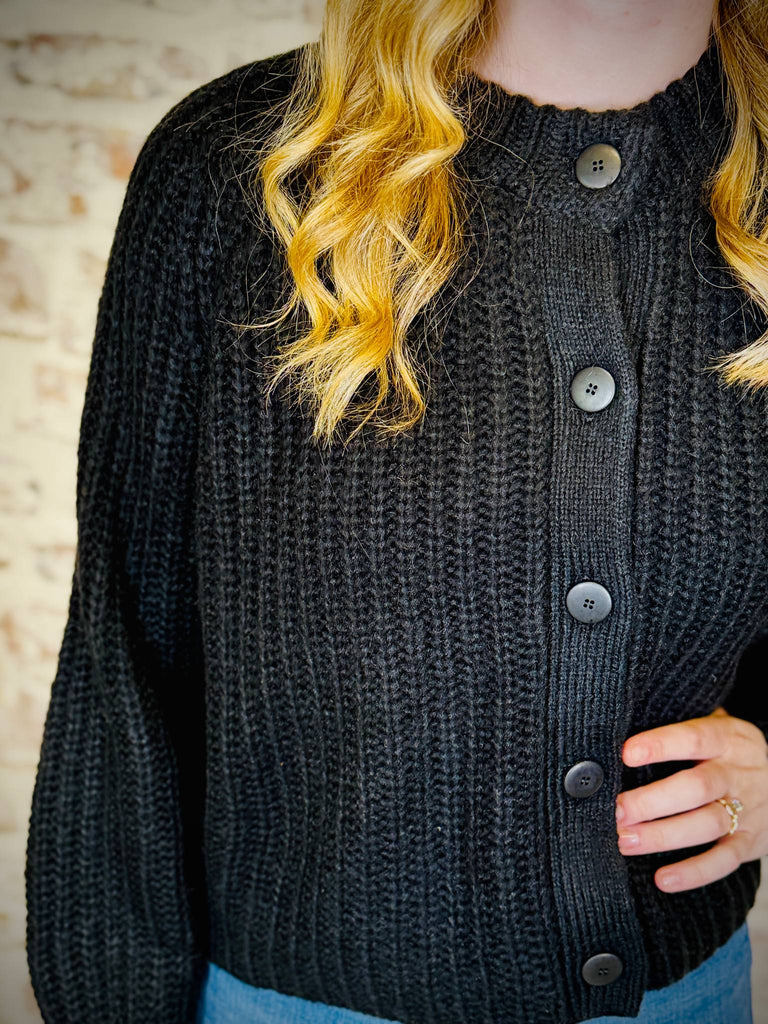 Black Ribbed Cardigan