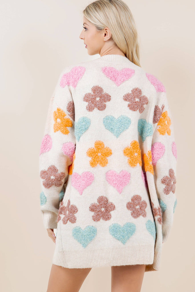 Slip into effortless spring style with this charming floral cardigan. Designed with a relaxed dropped shoulder, flowing long sleeves, and a flattering V-neckline, it buttons up for easy layering. Soft, pretty hues make it the perfect piece to brighten your wardrobe when the weather warms up.